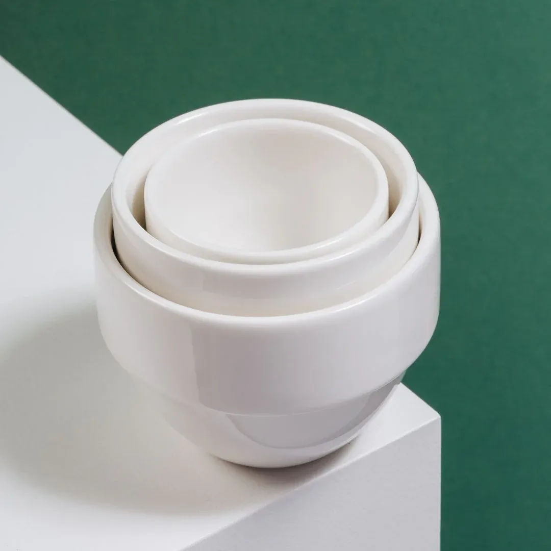 Con la friolera de 310ml, nuestro nuevo Taster es lo suficientemente grande como para servir una guarnición de sopa, un pequeño bol para batidos, un clásico bowl para café con leche o una generosa ración de helado. Además, son apilables y versátiles.