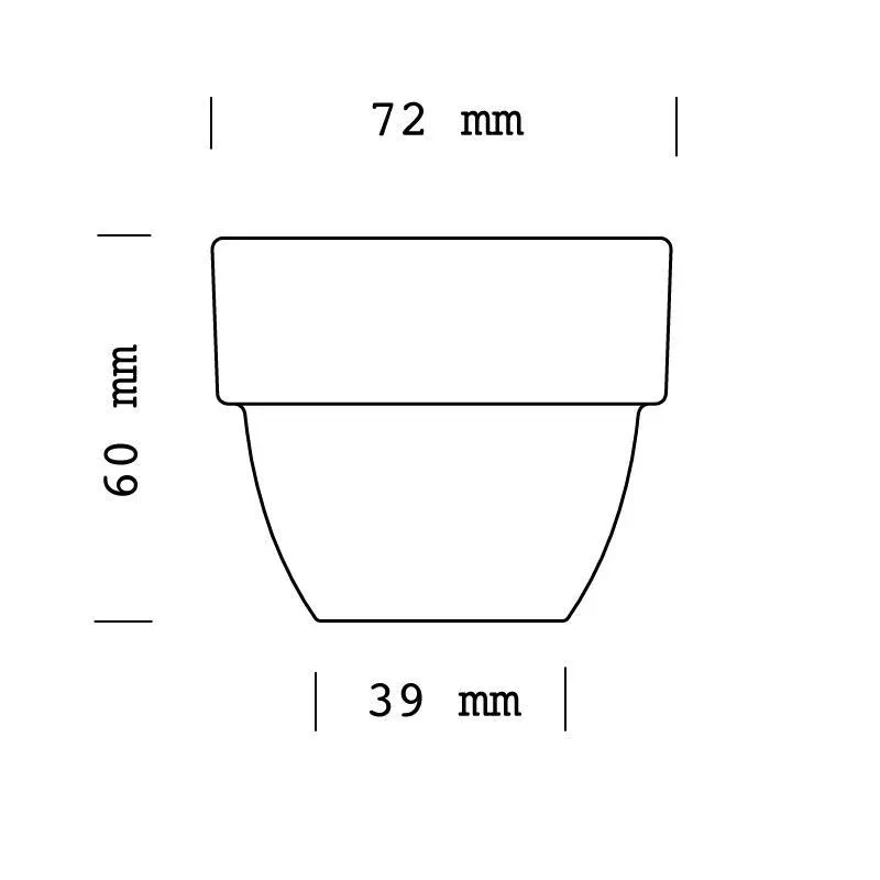 - Altura: 60 mm / Diámetro exterior: 72 mm / Diámetro de la base: 39 mm