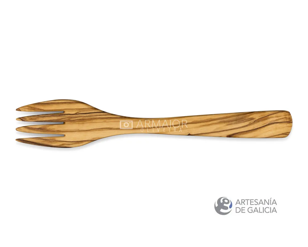 Tenedor de mesa hecho a mano en madera de olivo. Tenedor para comer en la mesa, con horquilla de cuatro puntas, ligero, suave y resistente para usar todos los días o para ocasiones especiales.