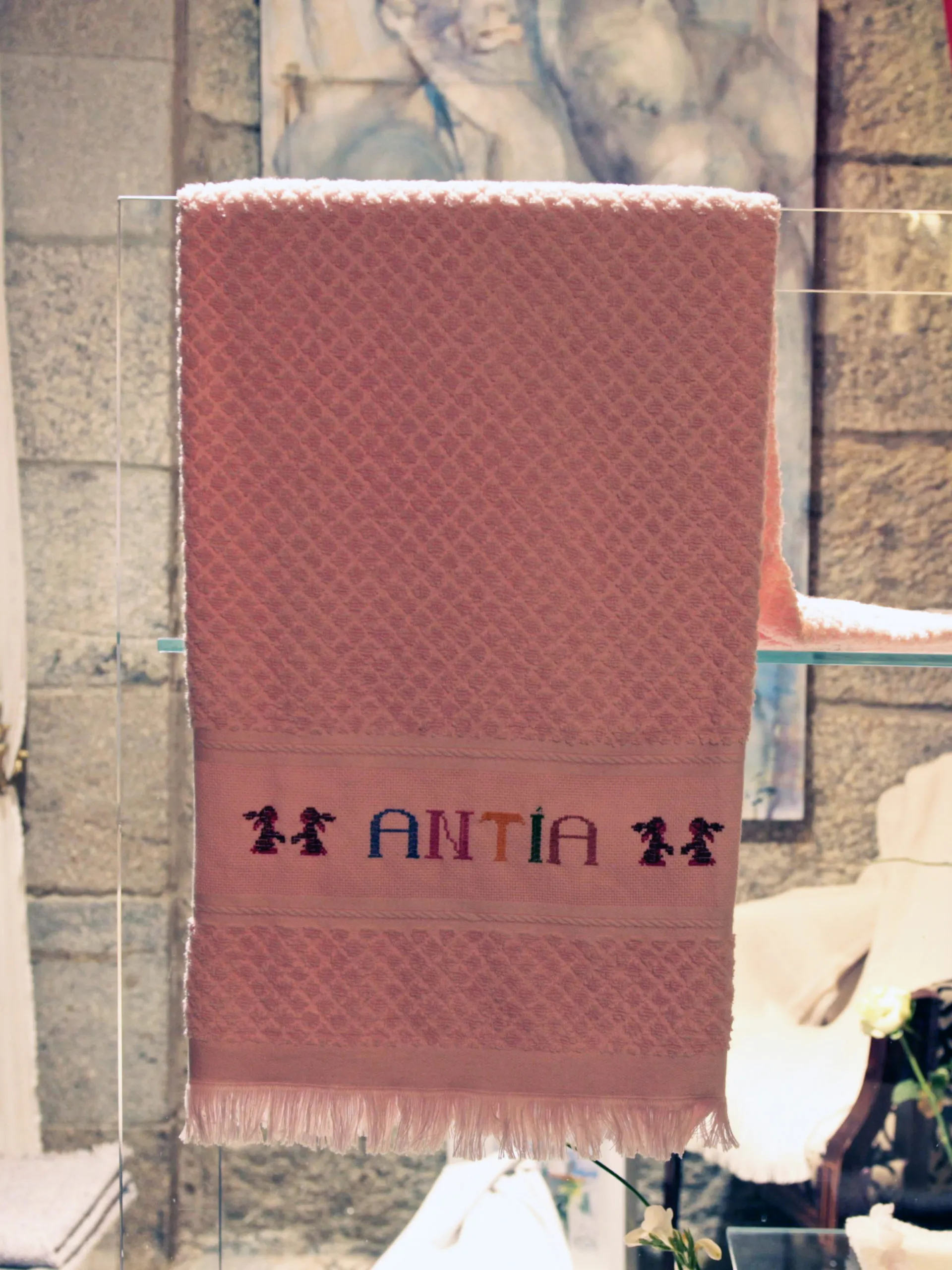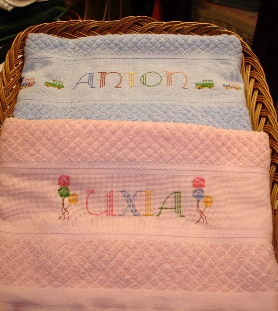Toalla cuadrada, rizo de algodón bordada a mano .