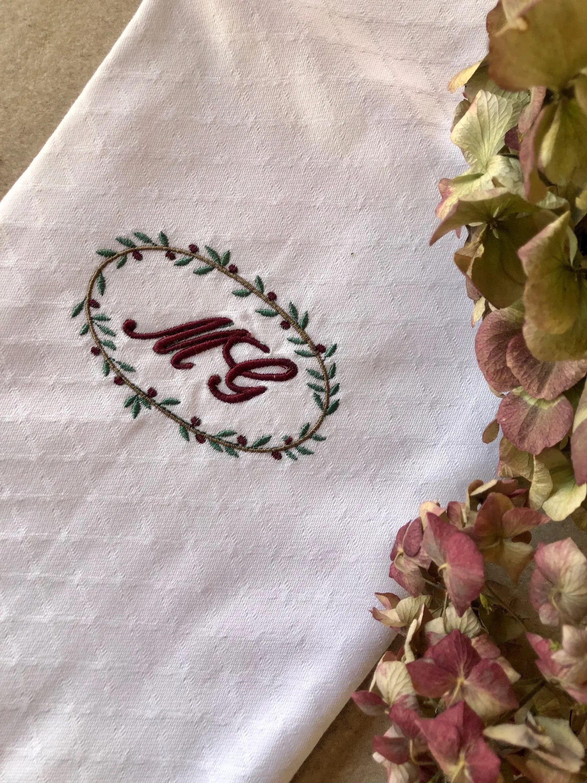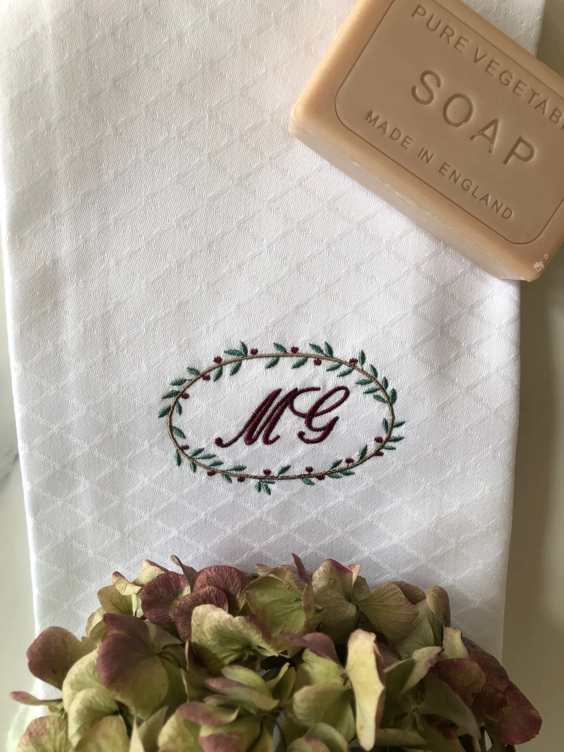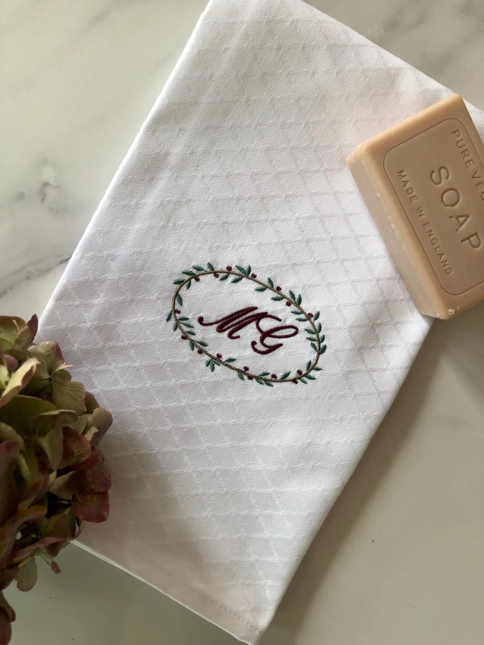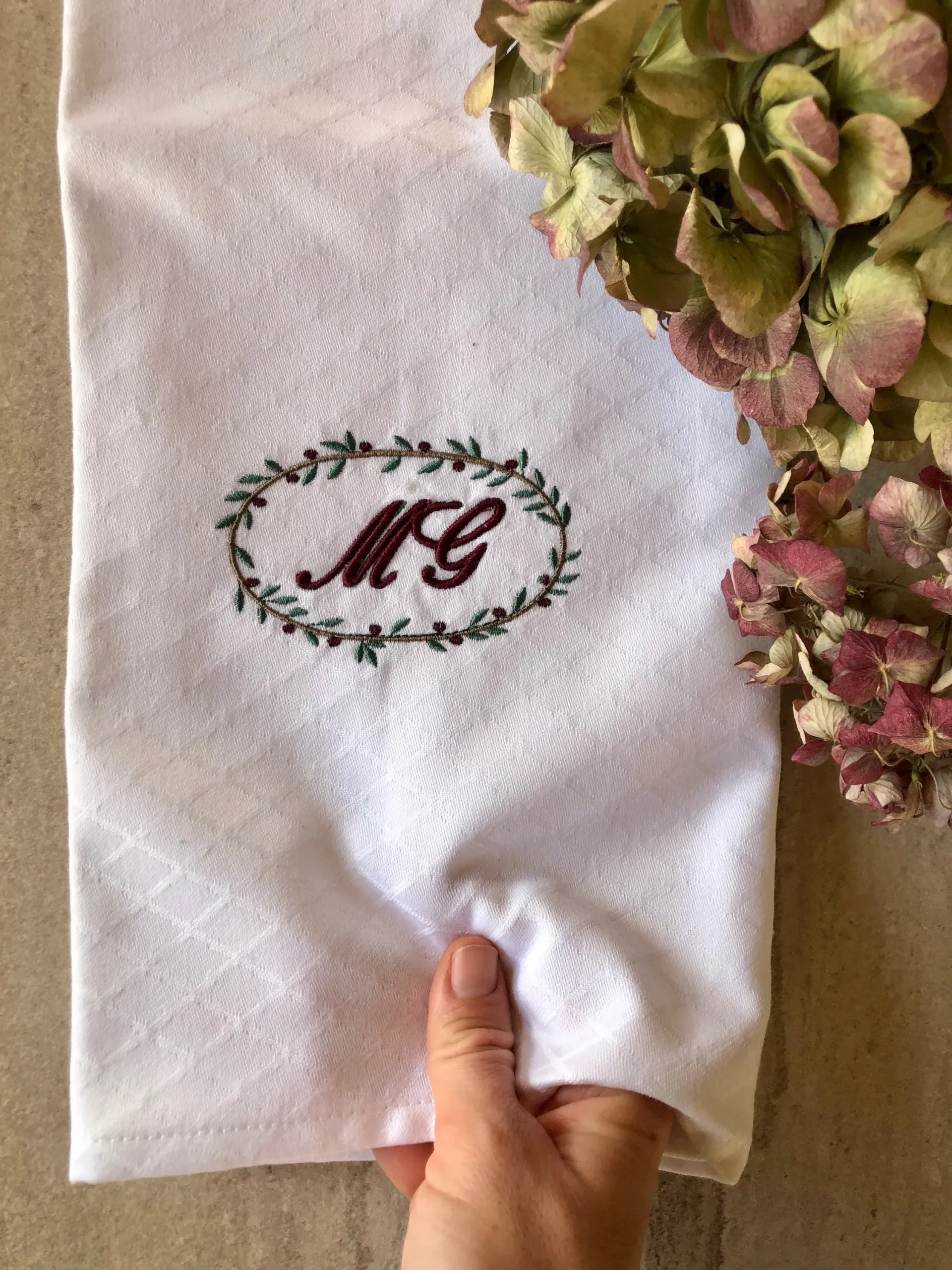 Toalla de fina de pique bordada en varios colores. Ideal para recibir en casa y usar para el secado de manos. Personalízala con tus iniciales y crea hogar en cada rincón de casa