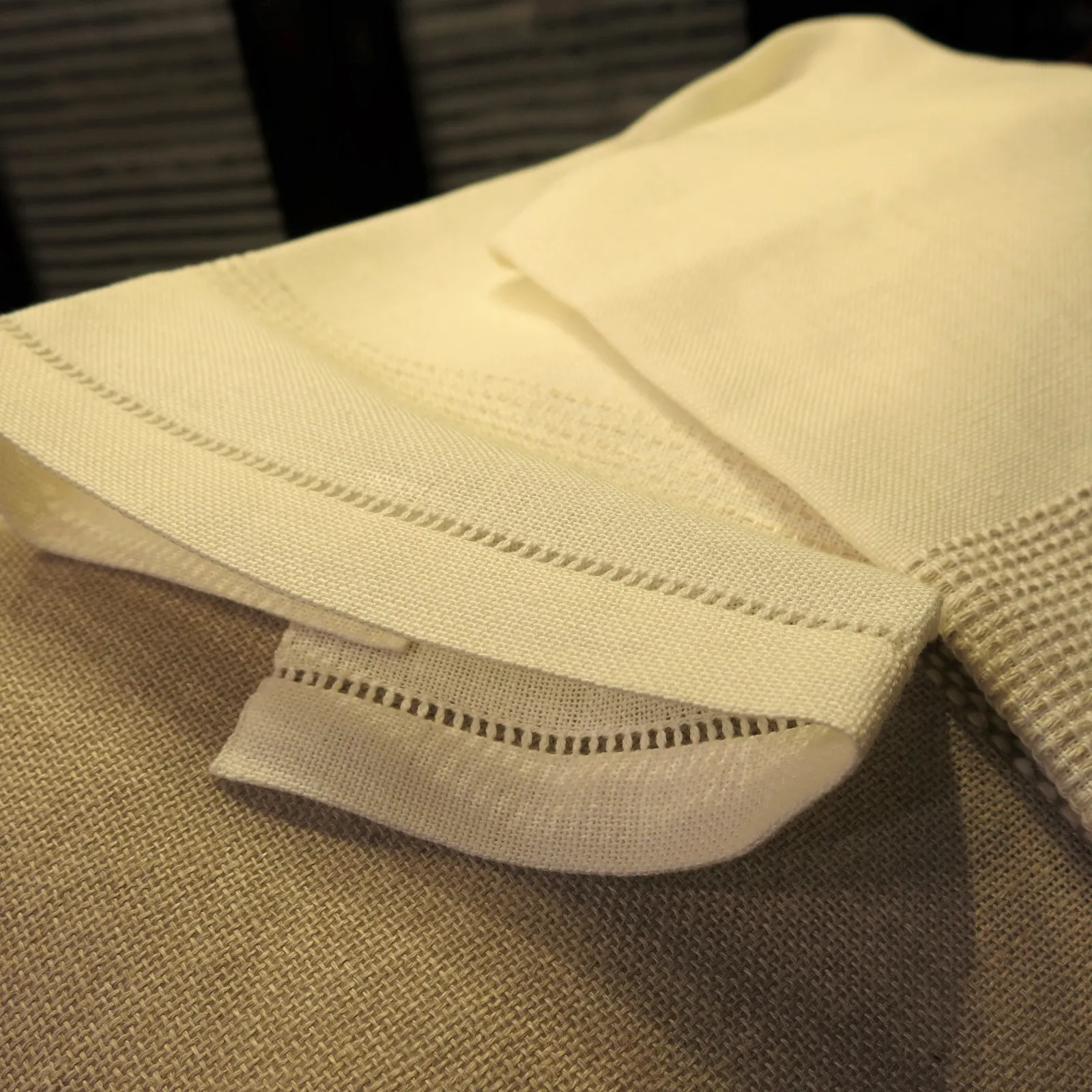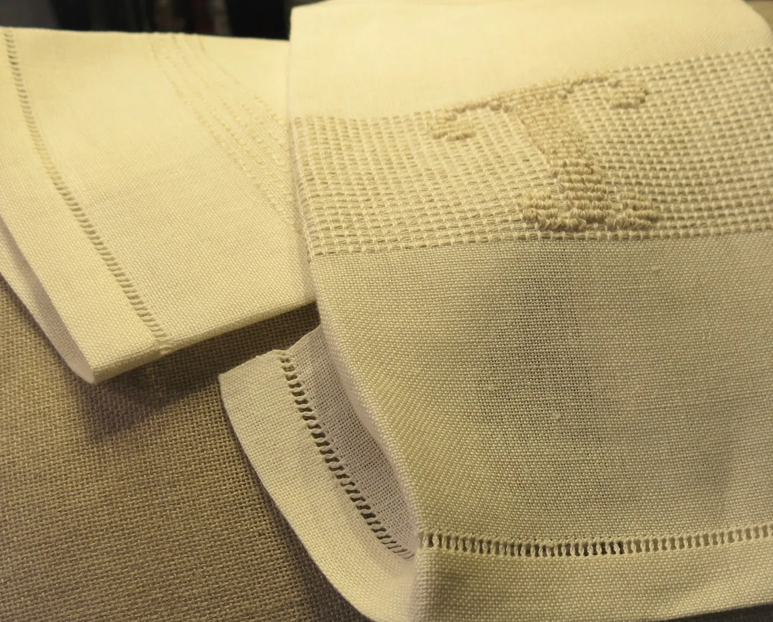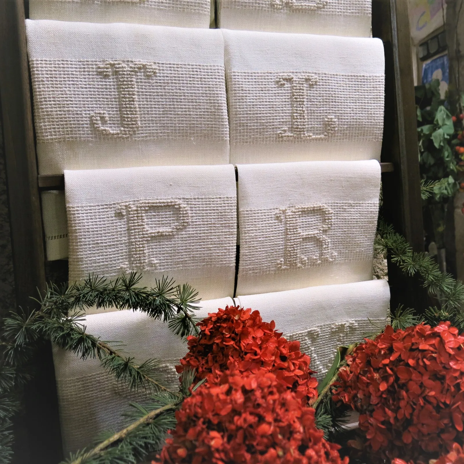 Toallas de lino 100%, elaboradas en telar tradicional y con inicial o diseño personalizado. Los bordes van rematados con una doble vainica, hecha a mano. Piezas exquisitas, de calidad inigualable.
