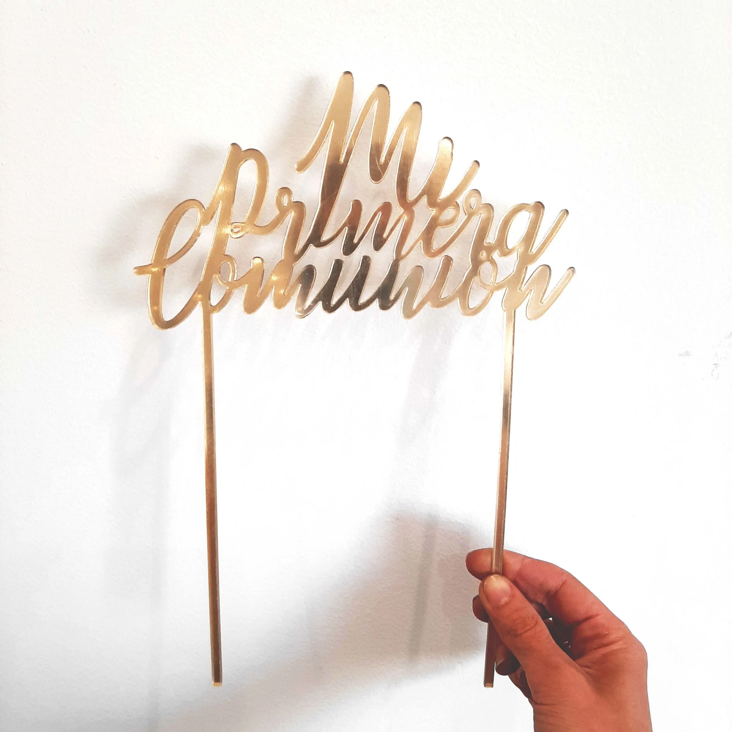 Decora y haz que brille tu pastel de Primera Comunión con este lindo modelo de topper en color oro. Ideal para decorar el pastel o la tarta y celebrar!  También podrías utilizarlo para tomarte fotos de recuerdo, colocarlo en unas flores, decorar la mesa… ¡la idea que se te ocurra!