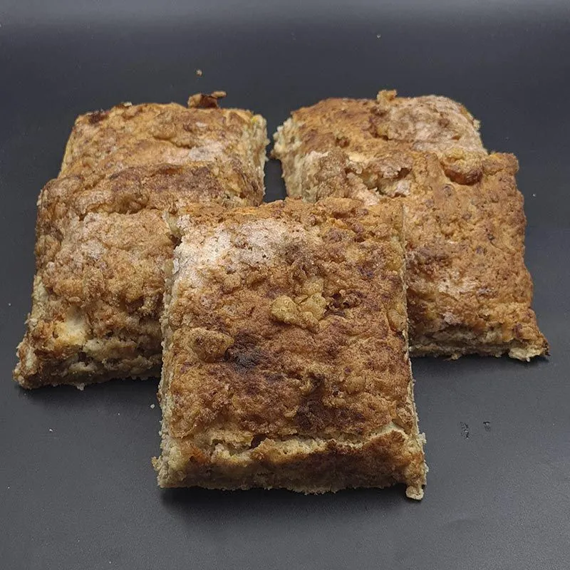 Masa de pan, Chicharrones de manteca, Azúcar, Canela y Ralladura de limón.
