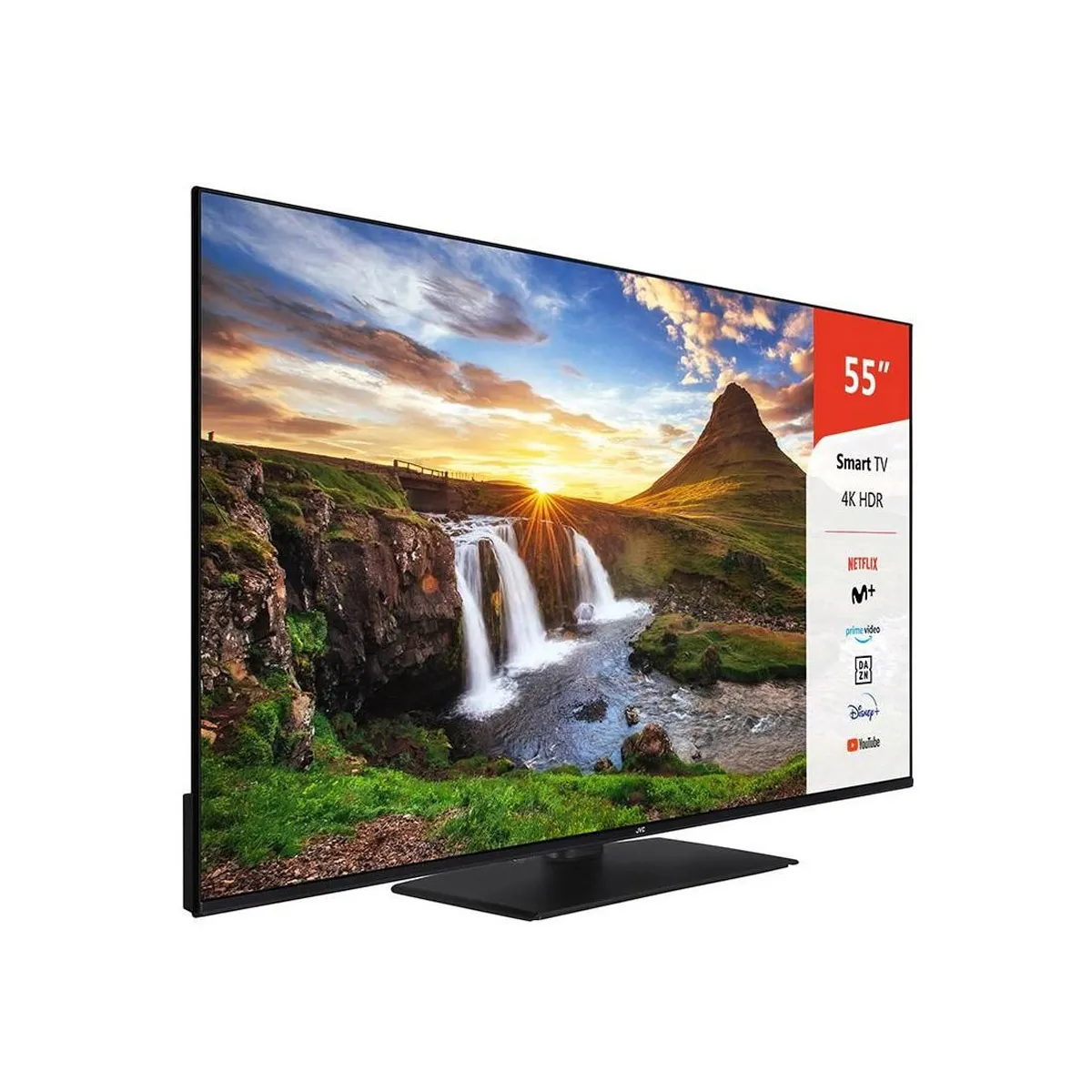 El televisor JVC LT-55VD3300S ofrece una experiencia de entretenimiento envolvente con su pantalla de55″ y resolución Ultra HD 4K. Compatible con HDR10 y HLG, proporciona imágenes nítidas y colores vibrantes. Su sistema Smart TV permite acceder a aplicaciones como Netflix, Prime Video y YouTube, mientras que la conectividad WiFi y Ethernet garantiza un streaming fluido. Cuenta con sonido Dolby Audio de 24 W, diseño elegante en negro y compatibilidad con montaje VESA. Un televisor completo para disfrutar de tus contenidos favoritos con la mejor calidad.