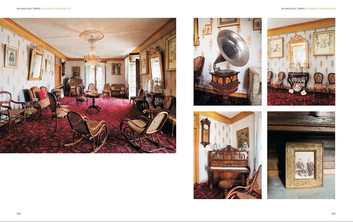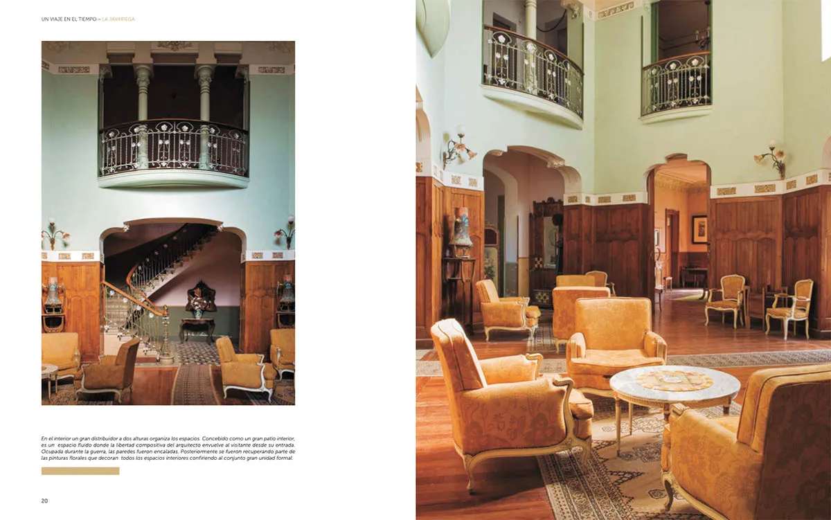 El libro muestra los interiores de cuarenta casas por toda Asturias, con toda su riqueza de salones, dormitorios y espacios, testigos de la riqueza de sus propietarios.