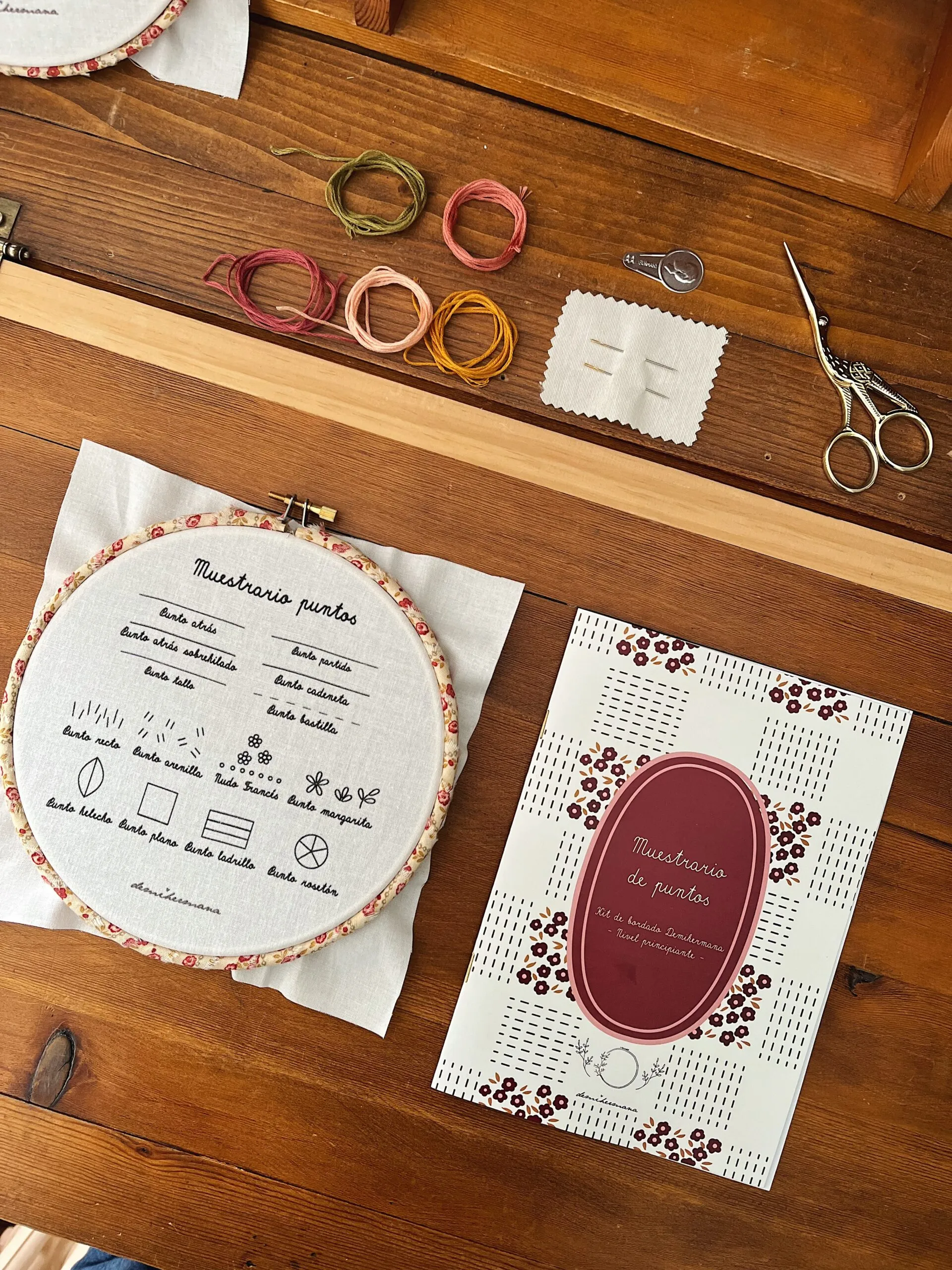 - Soporte visual de vídeo con el paso a paso de las puntadas, disponible en el área de usuario en www.demihermana.com