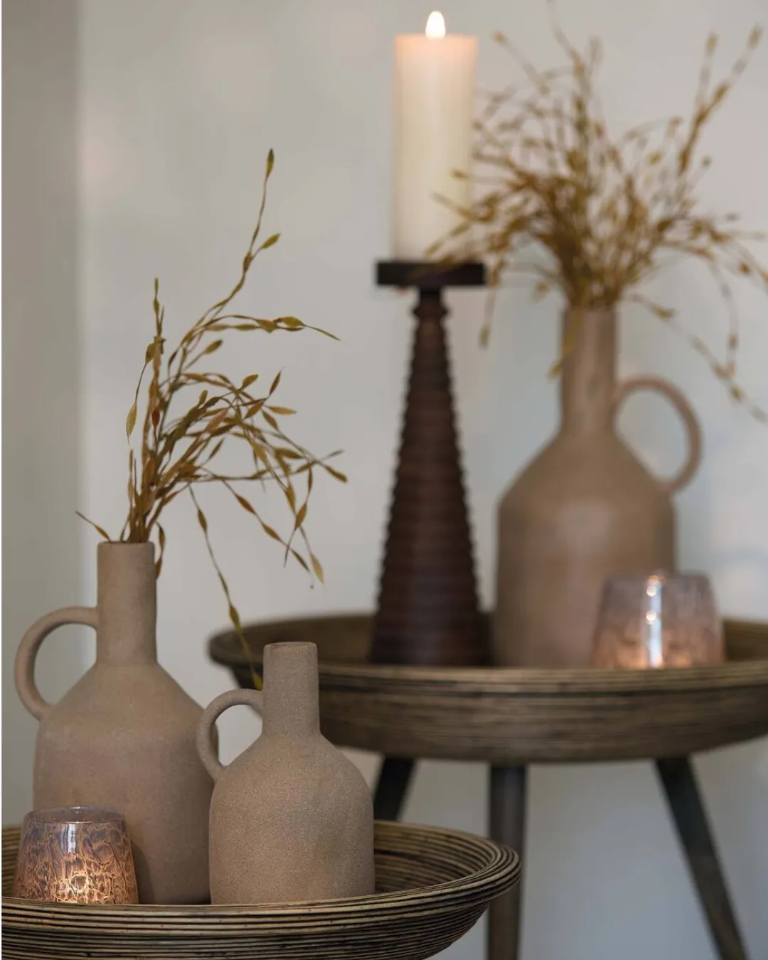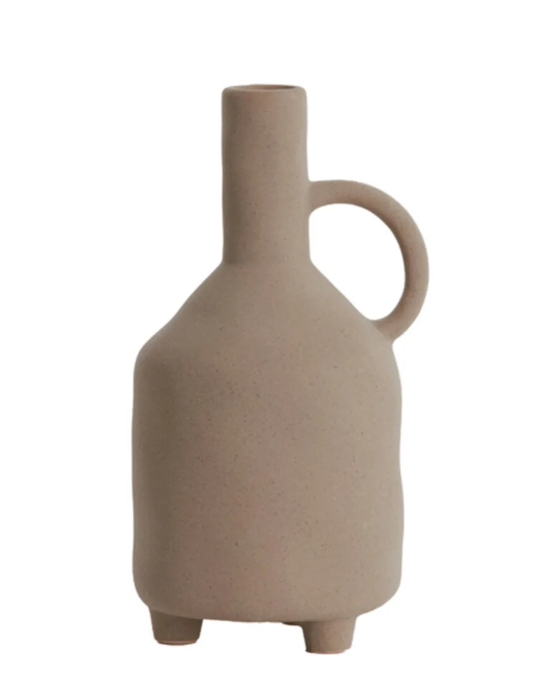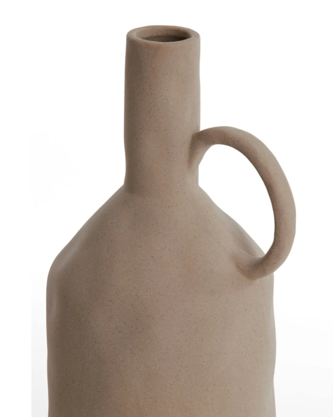 Vasija de cerámica color marrón mate tamaño mediano. Medidas 14,5 x 13 x 27,5 cm. No es apto para exteriores.
