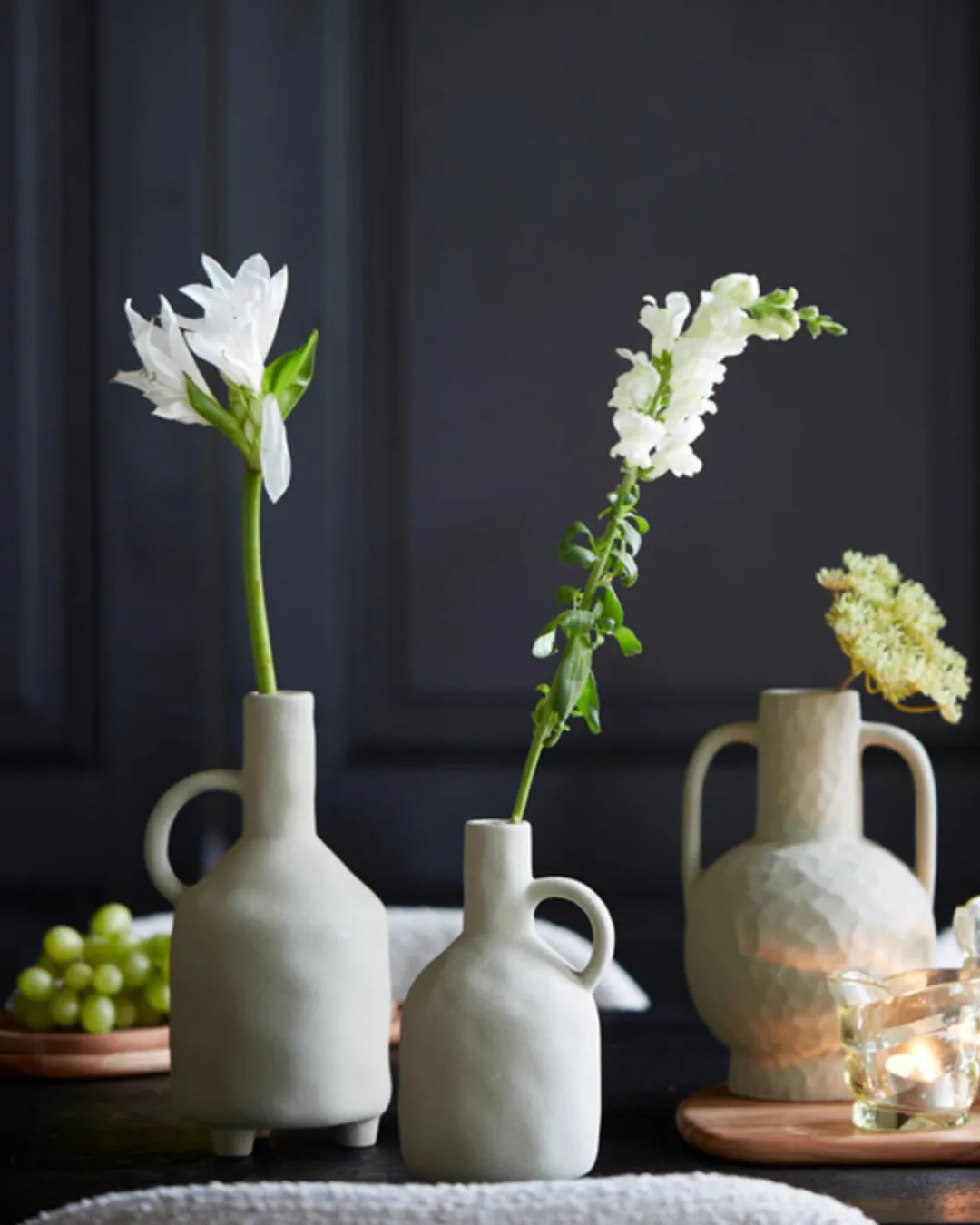 Vasija de cerámica color verde oliva mate tamaño pequeño. Medidas 12 x 11 x 21,5 cm. No es apto para exteriores.