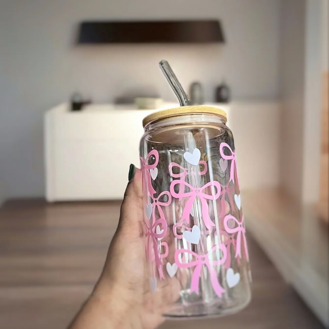 ♡ Hecho de vidrio y personalizado con vinilo adhesivo permanente, garantizando su durabilidad aún con los lavados.