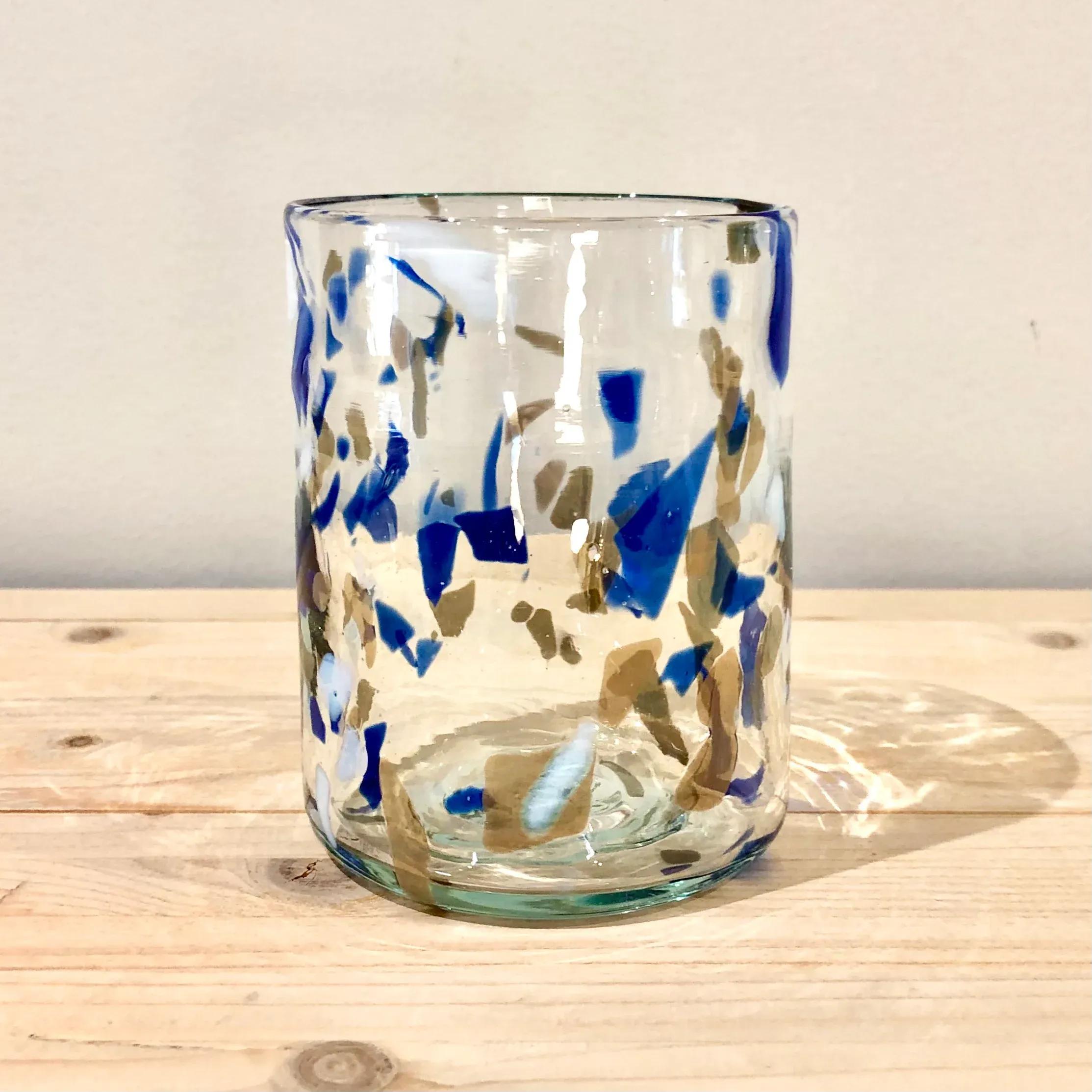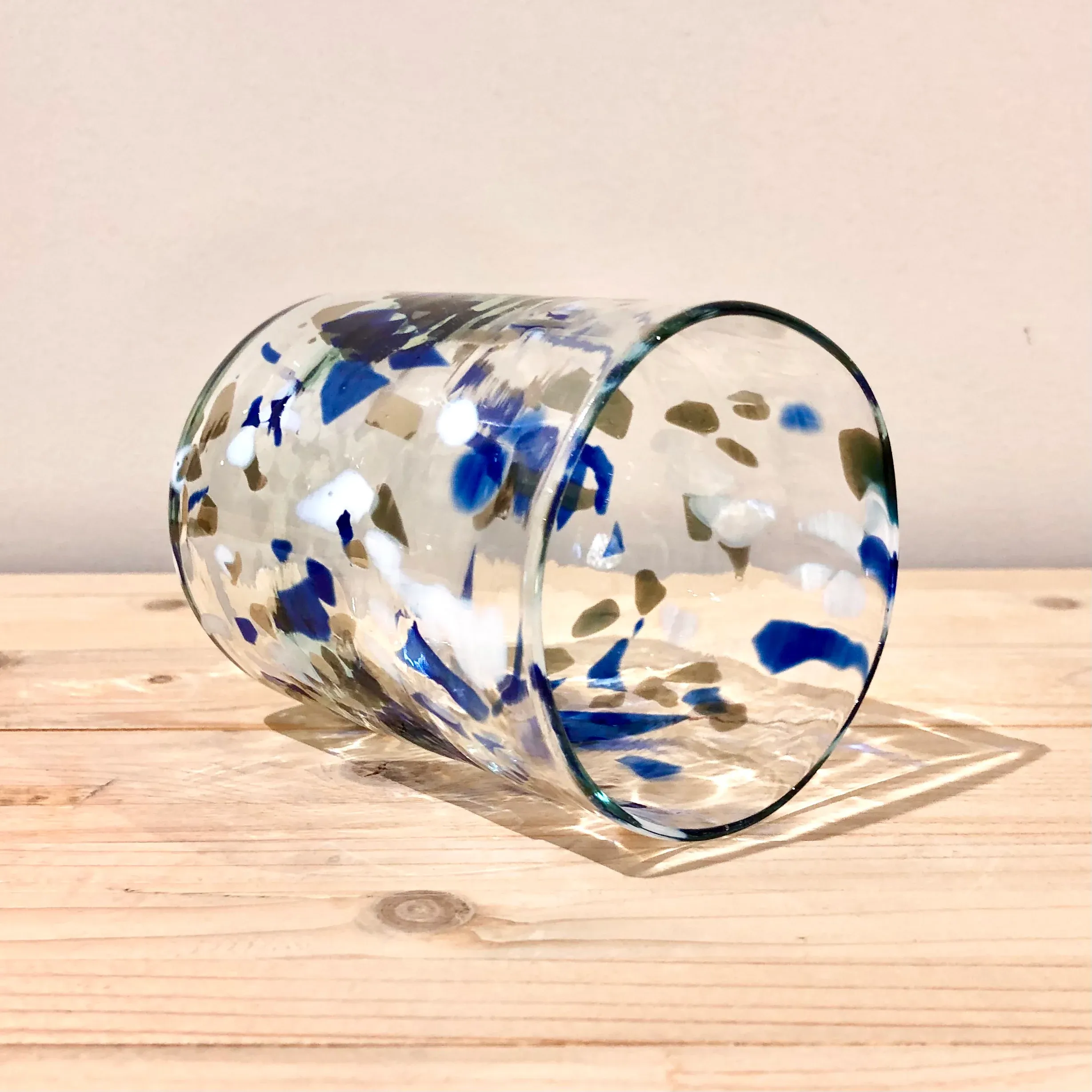 Cada vaso tiene un espectacular dibujo de manchas irregulares en diferentes colores que nunca se repiten de la misma forma.