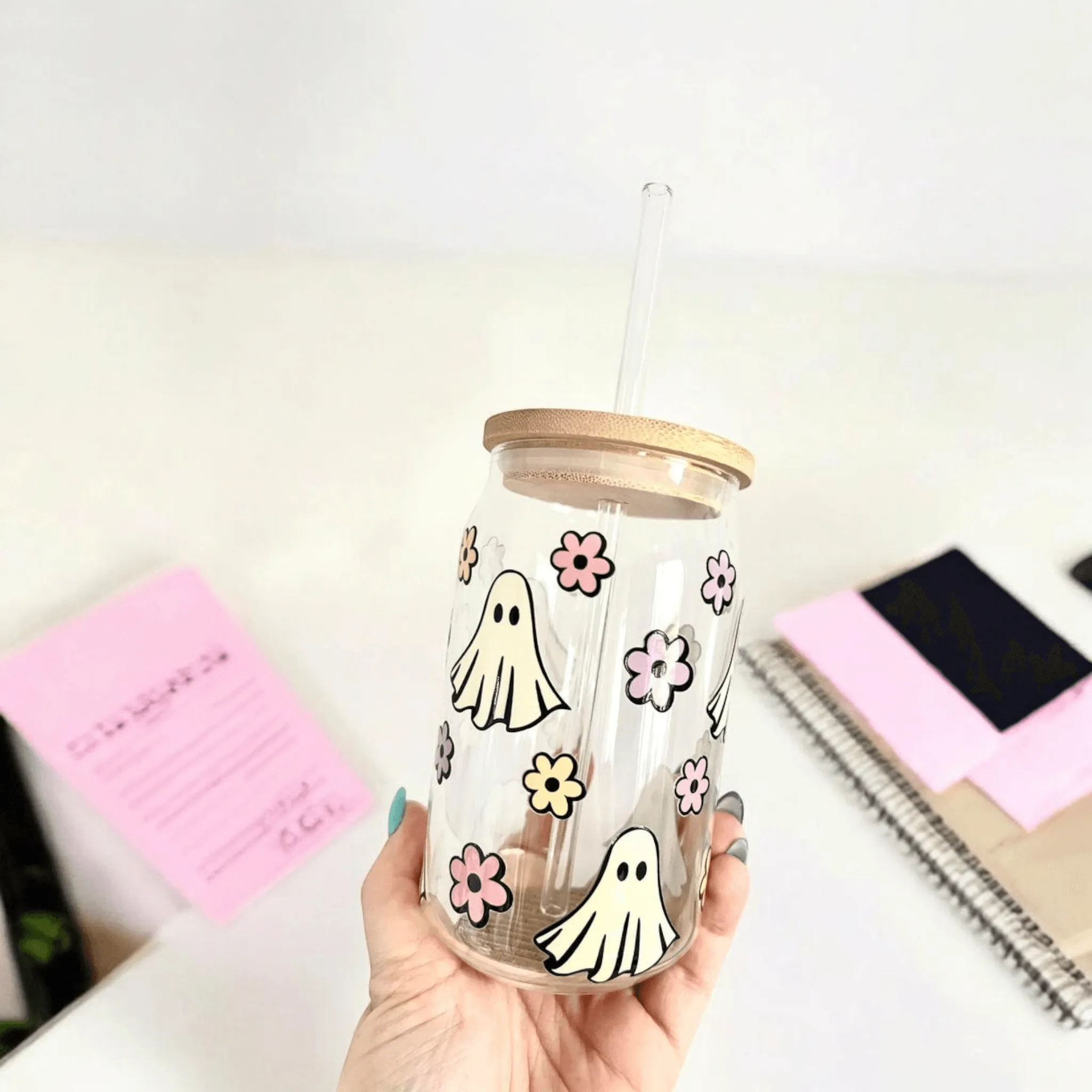 Vaso de Fantasmas y Flores: Un Toque Mágico en Cada Sorbo 👻🌸