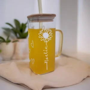 Es cierto que lo importante está en el interior, pero estamos convencidos de que el vaso adecuada consigue que todo esté muchísimo más bueno. Imagina la ilusión que le va a hacer a esa loca por los girasoles que le regales este vaso personalizado con su nombre y con qué amor se va a acordar de ti cada vez que se tome su zumito.