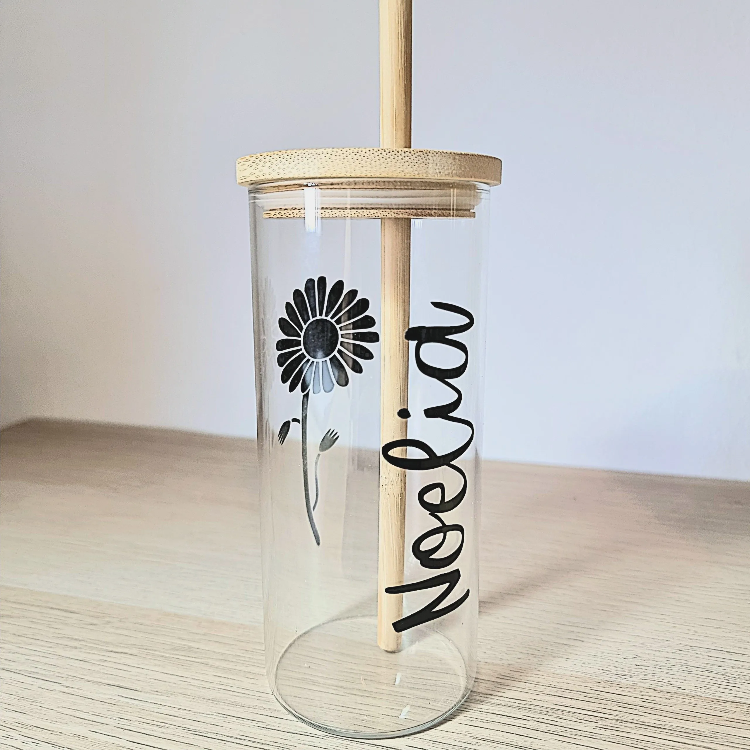 ♡ Hecho de vidrio y personalizado con vinilo adhesivo.