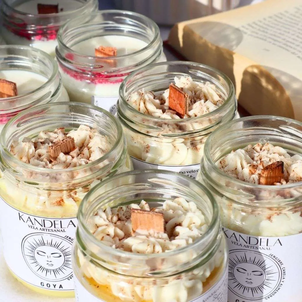 Descubre nuestra vela de soja artesanal Goya con aroma a canela, almendras y jengibre.