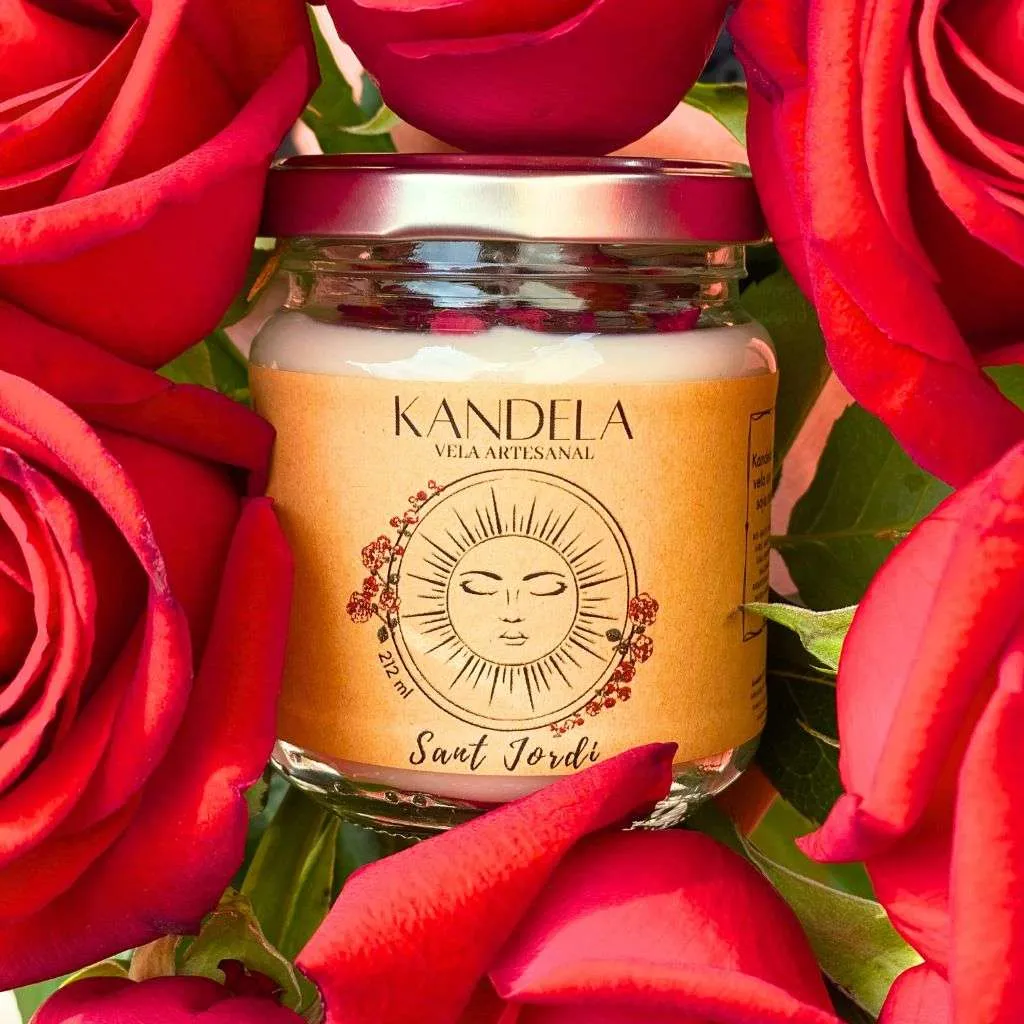 En Catalunya el día de los enamorados es el 23 de abril, una festividad durante los que se aman expresan de manera especial y simbólica regalándose una rosa, un libro. Para esta ocasión, decidimos crear una vela Kandela con un exquisito olor a Rosa.