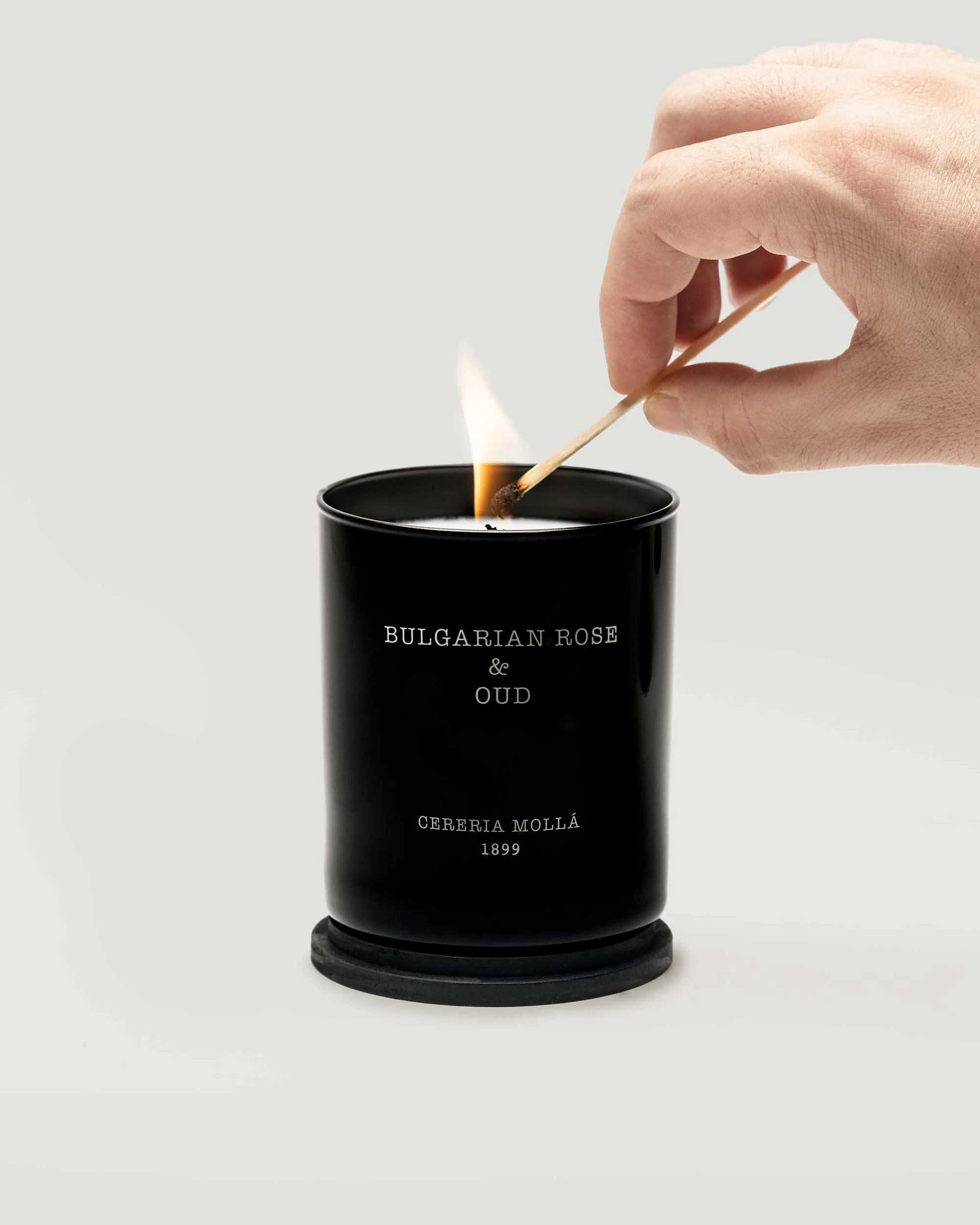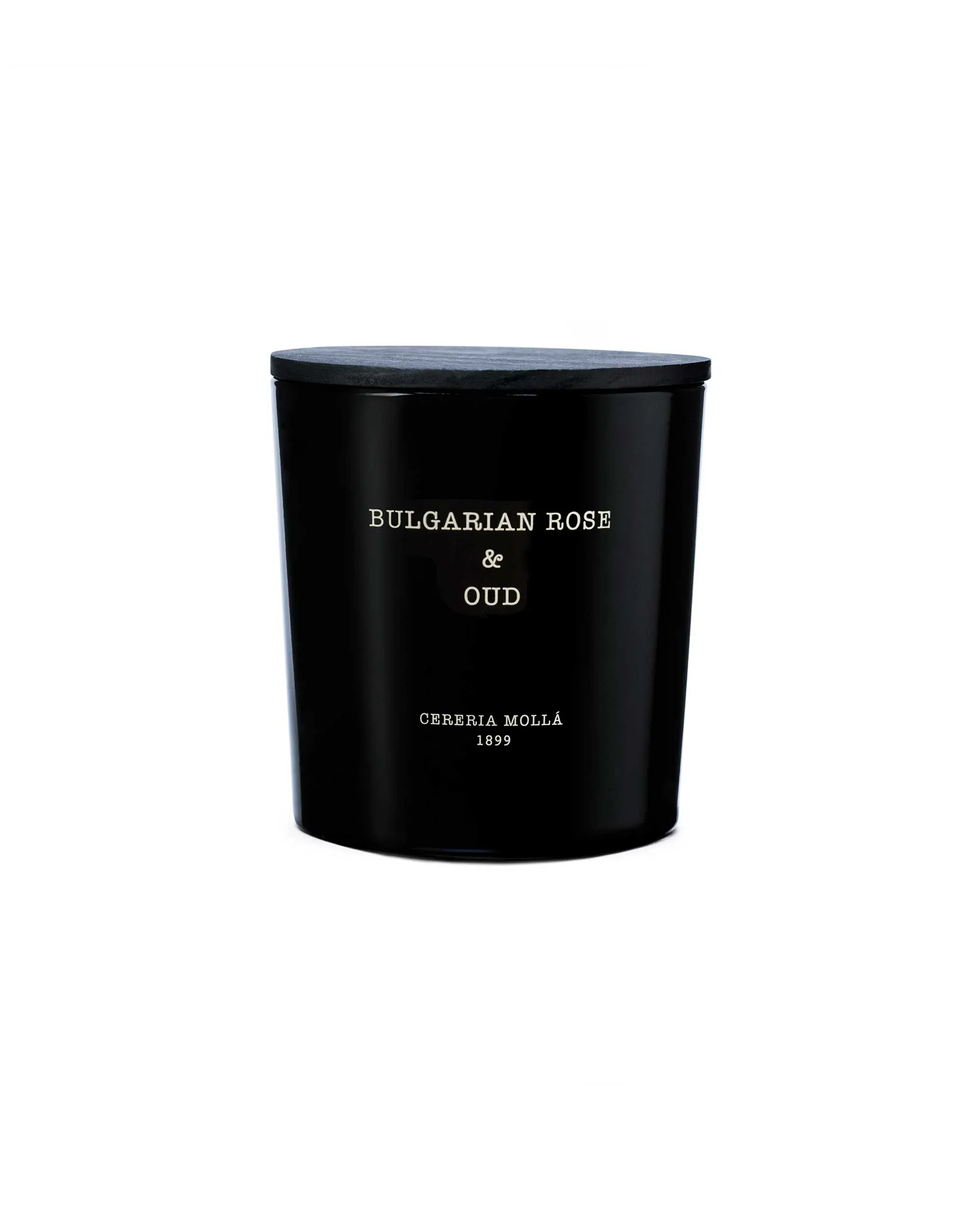 Vela aromática Bulgarian Rose & Oud en vaso de vidrio en color negro, en un tamaño de 230 gr. Disponible en dos tamaños: mediano de 230 gr. y XL de 600 gr. Y equipada con tres mechas en su tamaño superior.