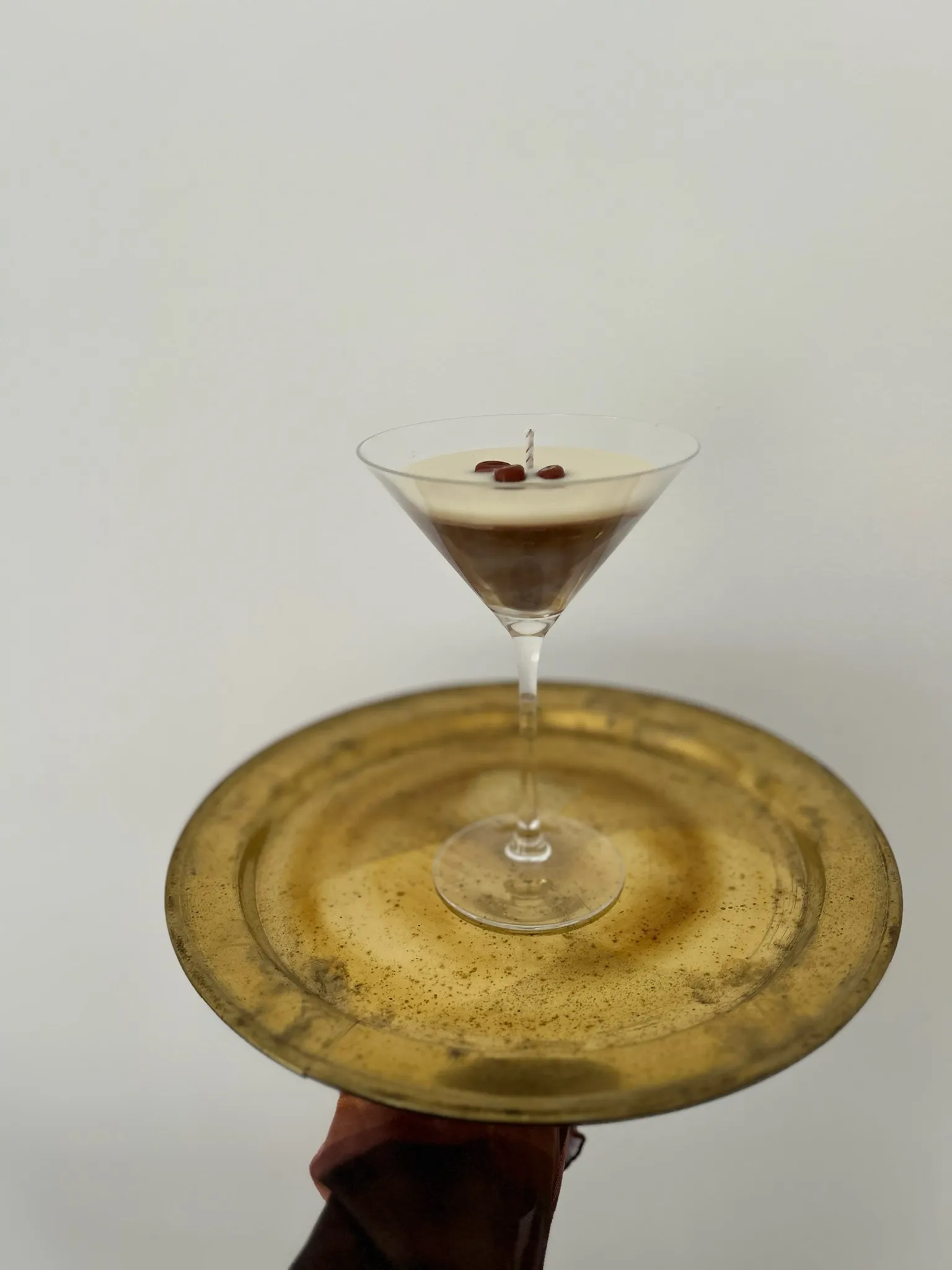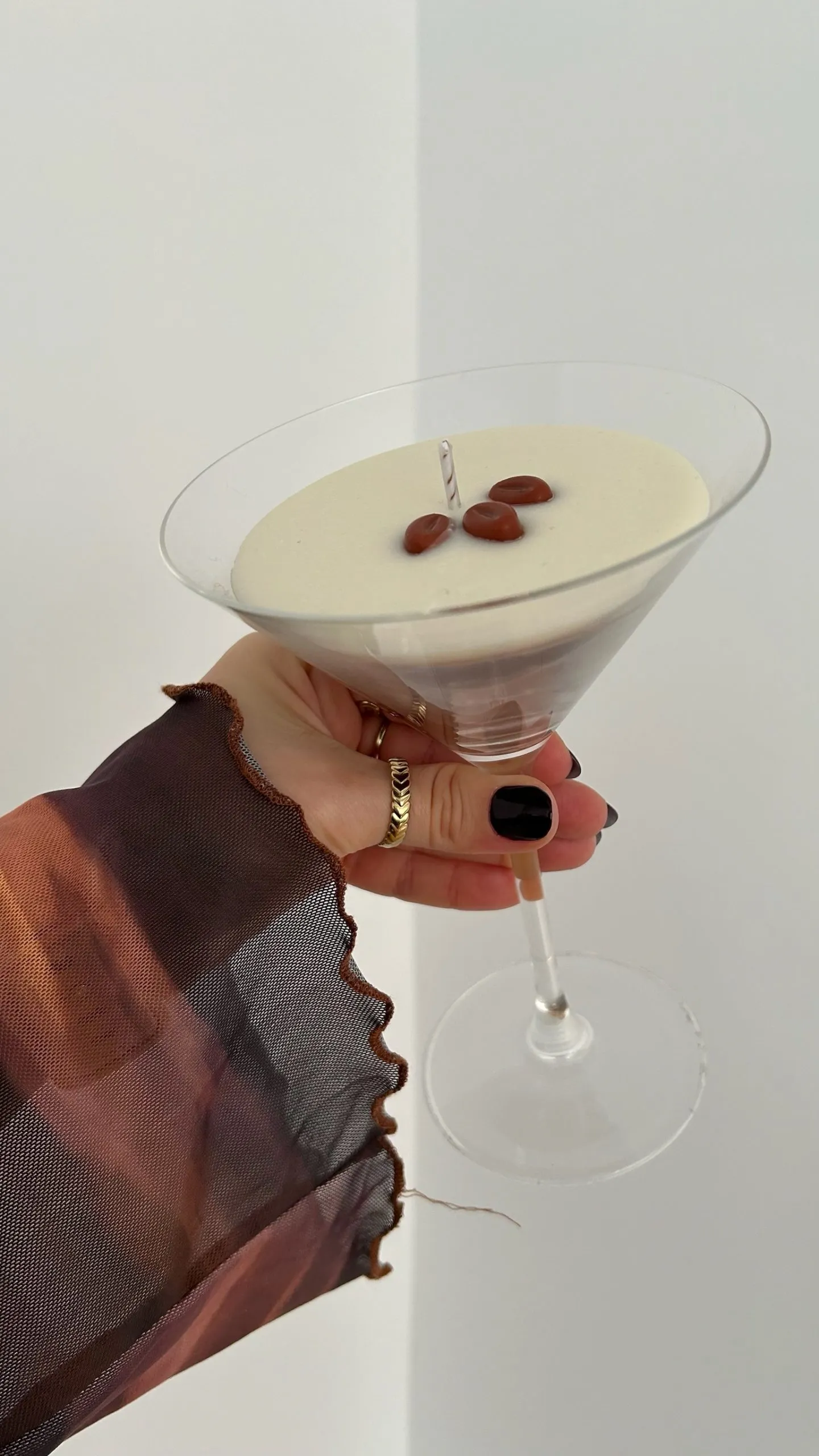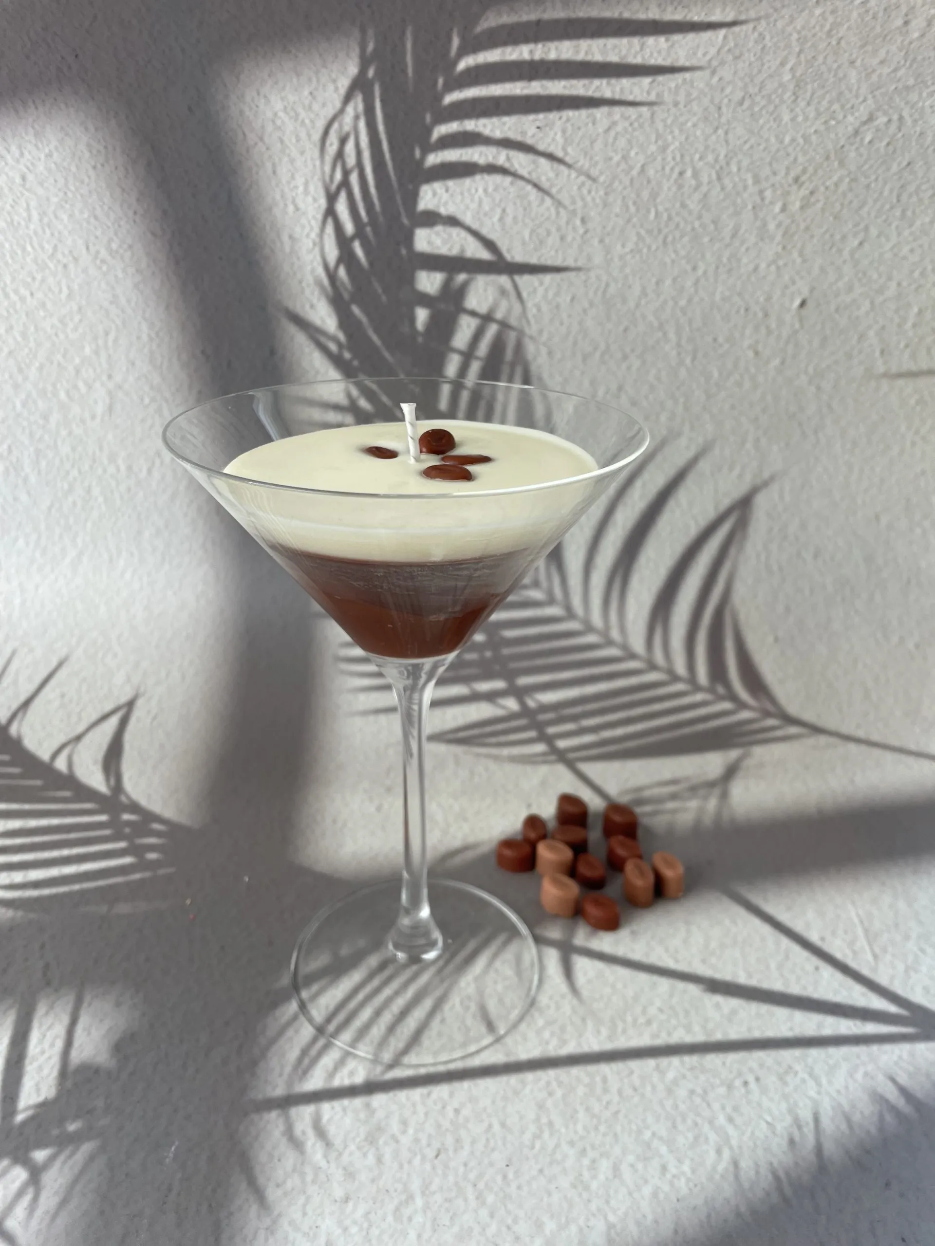 Un clásico reinventado en forma de vela. Con su diseño inspirado en el icónico cocktail y un irresistible aroma a cappuccino, esta vela es perfecta para los amantes del café. Hecha a mano con cera de soja.