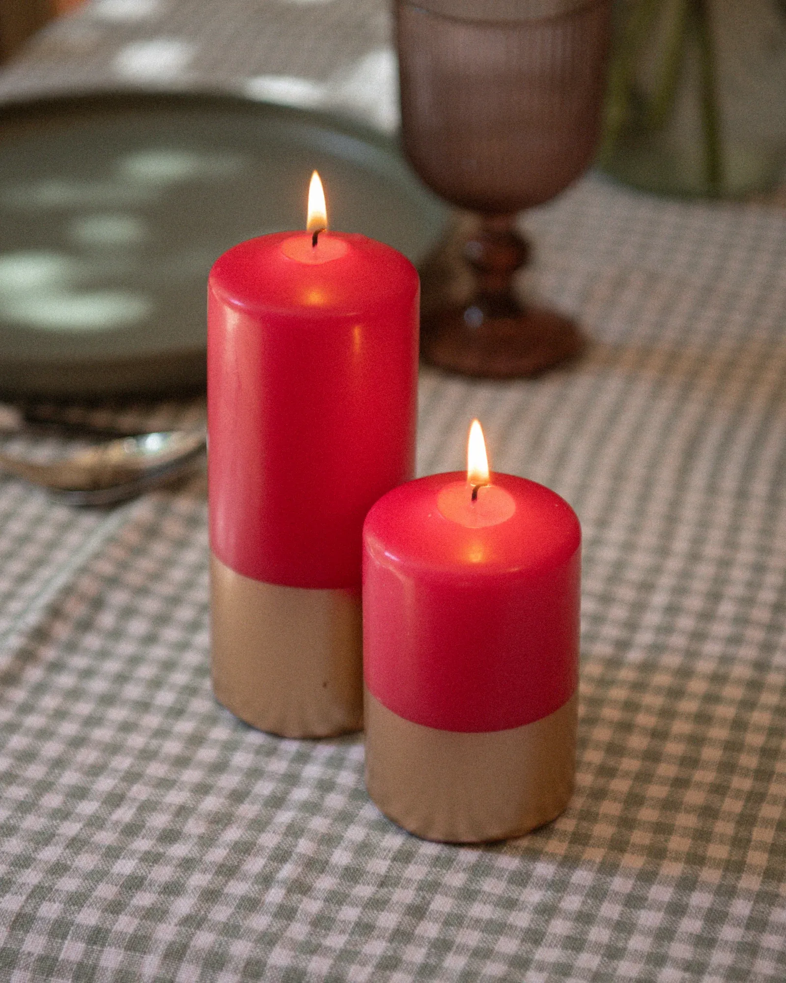 Con nuestras velas pilares bicromáticas, ¡agrega un toque de color a tu hogar! 6 dúos decorativos en tonos modernos realzados con oro, fabricados a mano en nuestros talleres con materiales de alta calidad. Nuestras velas garantizan una combustión limpia y una luz que brilla tanto como tus veladas.