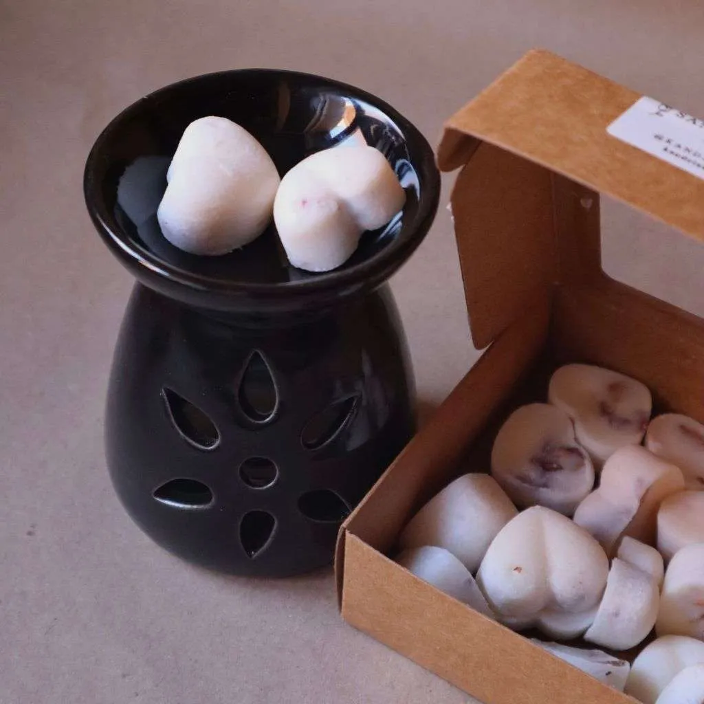 Elaborados a mano con cera de soja 100% natural y vegana, nuestros melts son una opción ecológica y libre de toxinas, ideal para aquellos que se preocupan por el bienestar del medio ambiente y desean productos que sean suaves para sus espacios y salud. Gracias a la cera de soja, nuestros melts ofrecen una combustión limpia y prolongada, sin emitir humo ni productos químicos nocivos, garantizando una experiencia aromática pura y libre de toxinas.