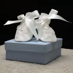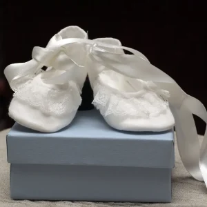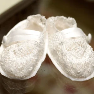 Zapatitos bebé de plumeti blanco y encaje -VENDIDO-