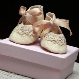 ZAPATITOS BEBE DE LINO Y ENCAJE