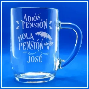 Adiós tensión, hola pensión | Jarra de Cerveza Personalizada