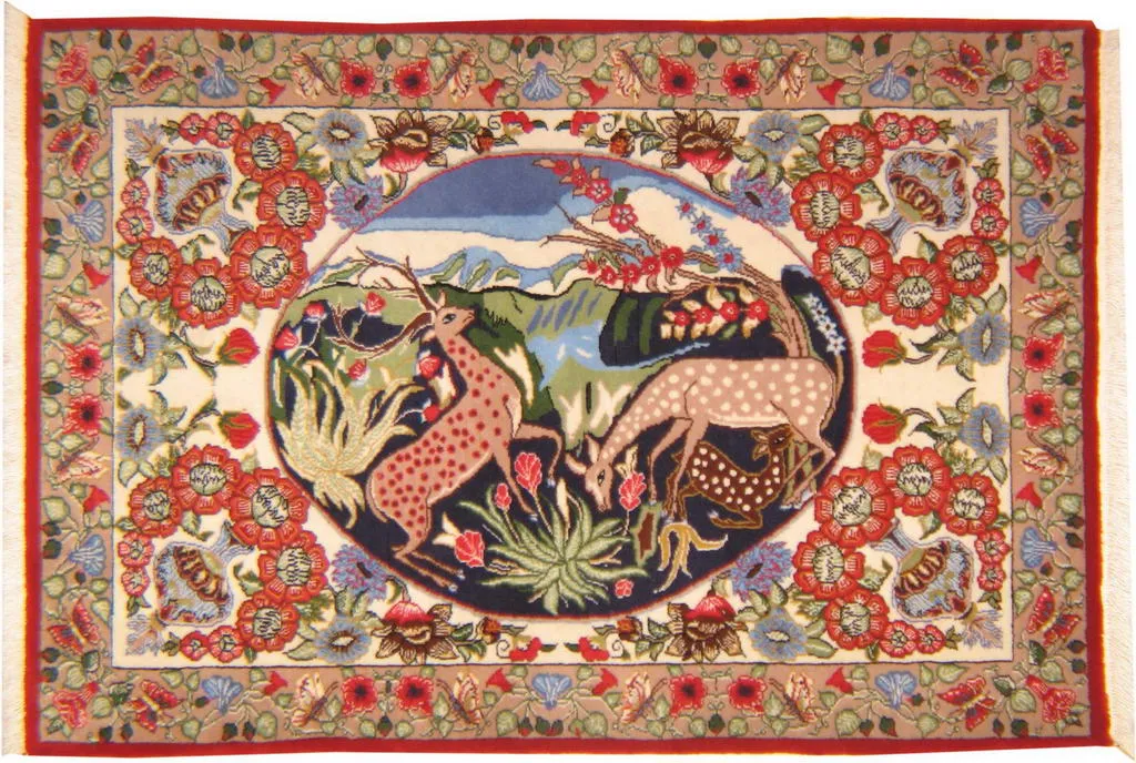 Alfombra persa. Anudada a mano. region de Ghom, Lana Virgen. Medidas: 114×078 cm.